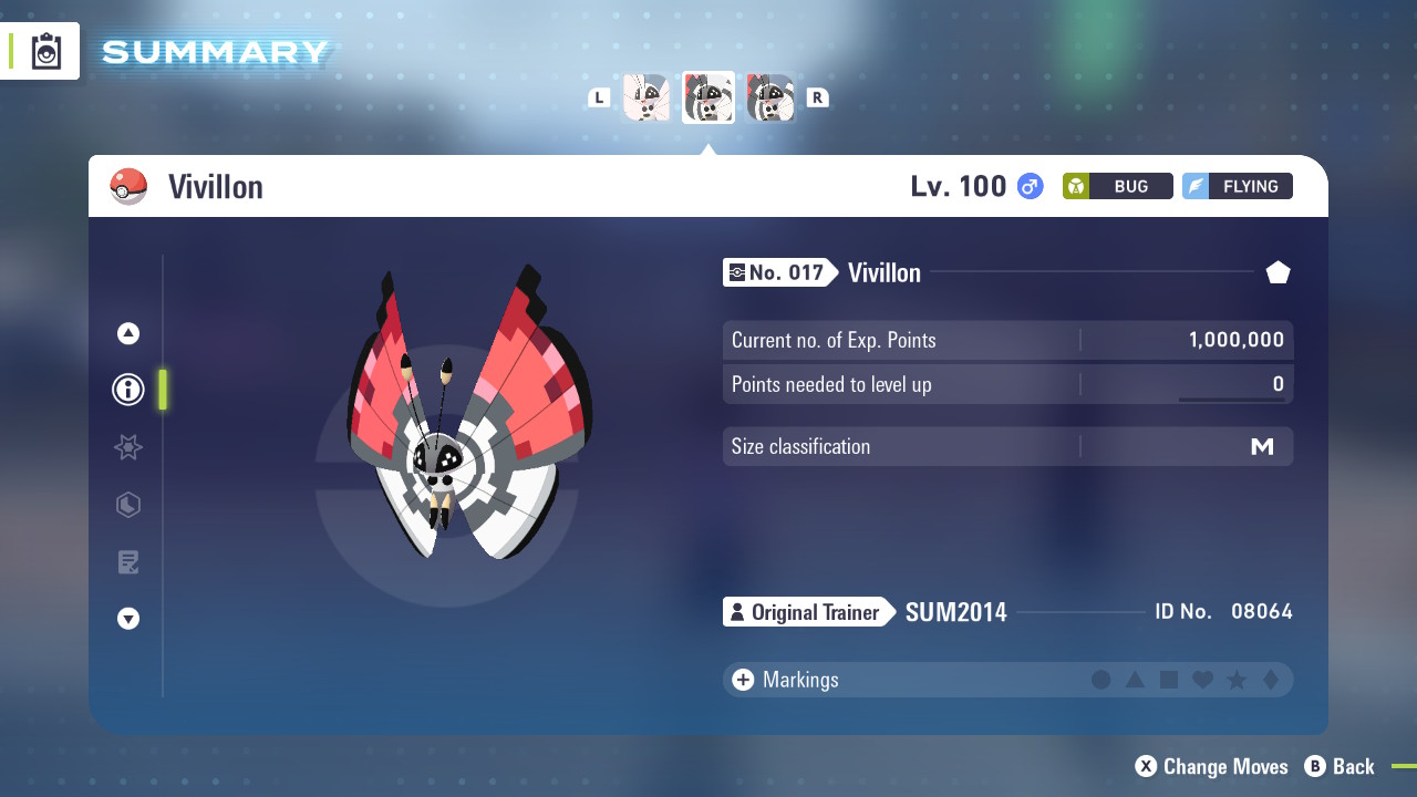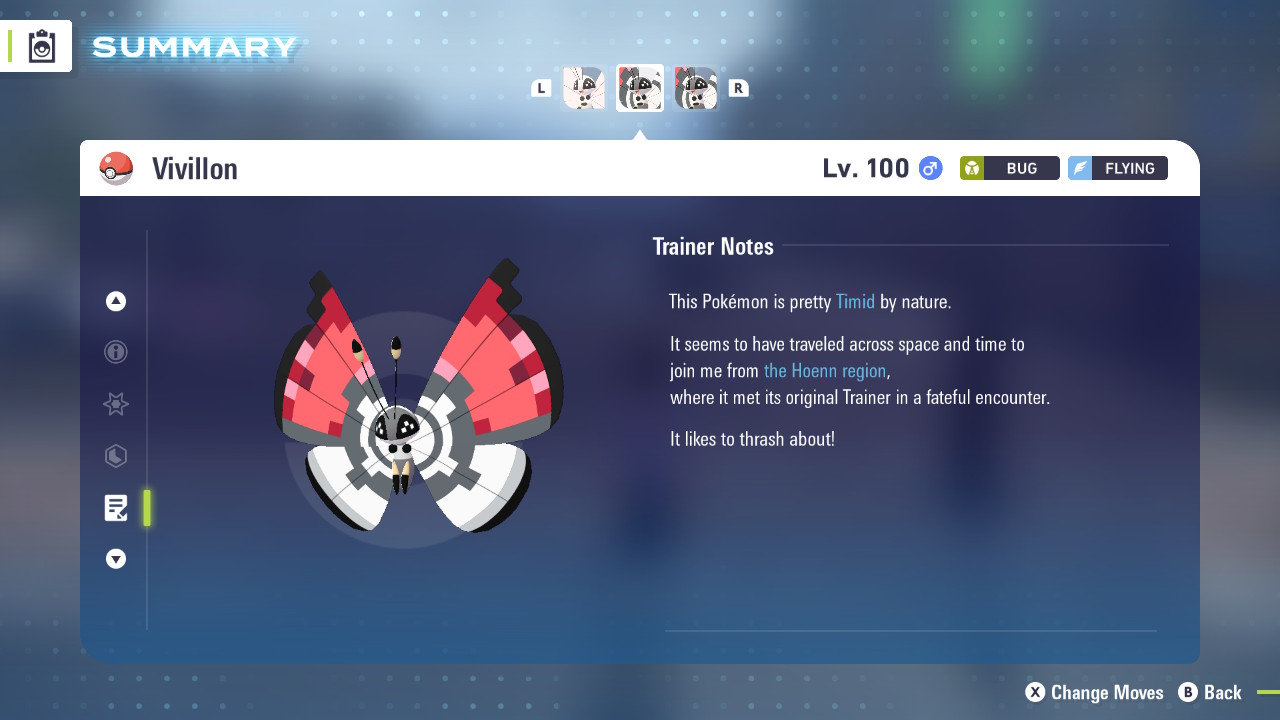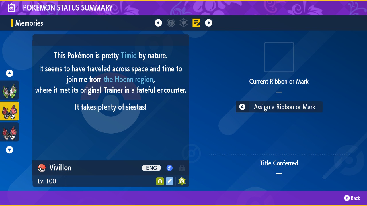 6IV Vivillon in Poke ball Pattern for the games Pokemon Scarlet, Violet, and Legends Z-A versions.