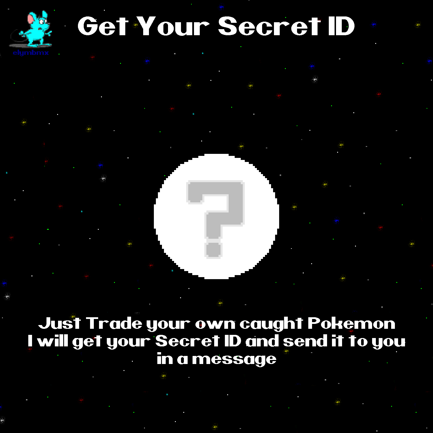 – 1 Your own caught Pokemon for this trade. The Pokemon must be your own caught. It has to be caught by you in the wild.