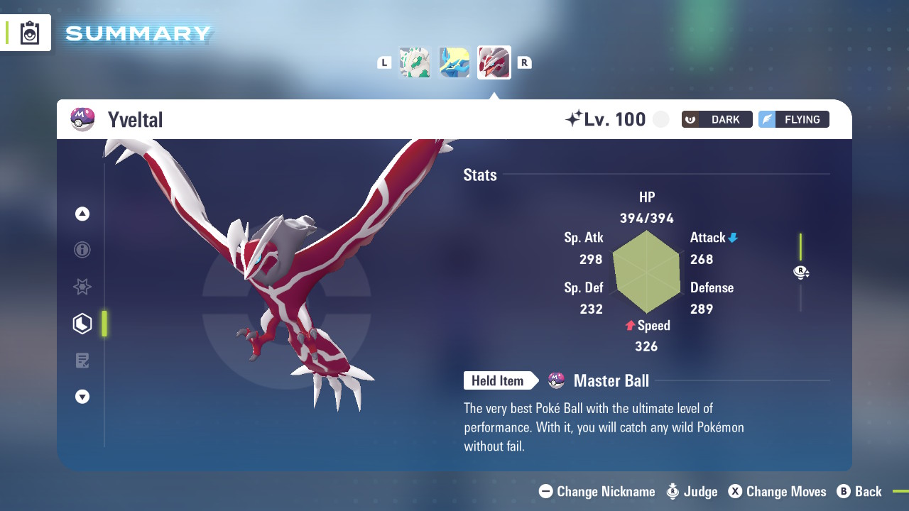 – Yveltal – Shiny and 6IV, Holding Master Ball.
