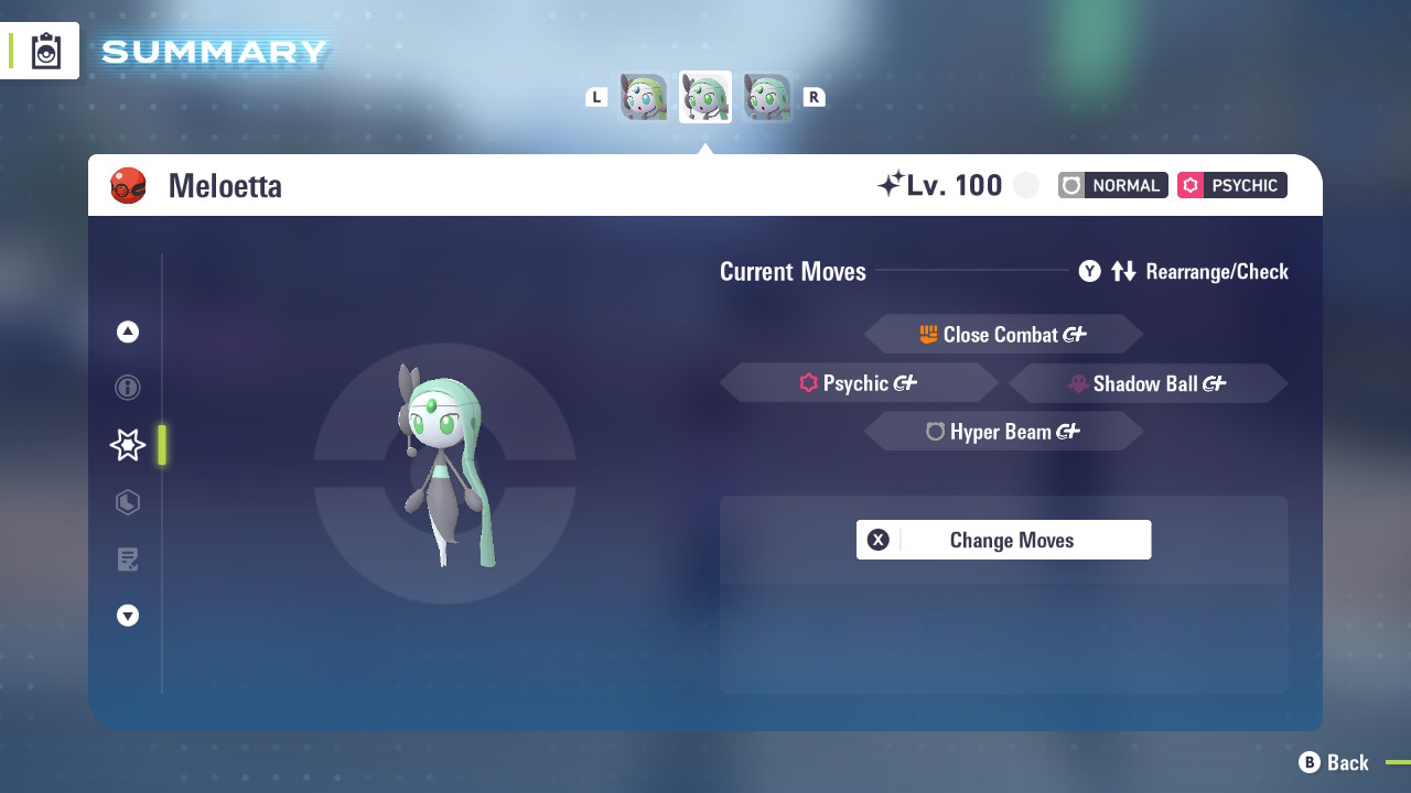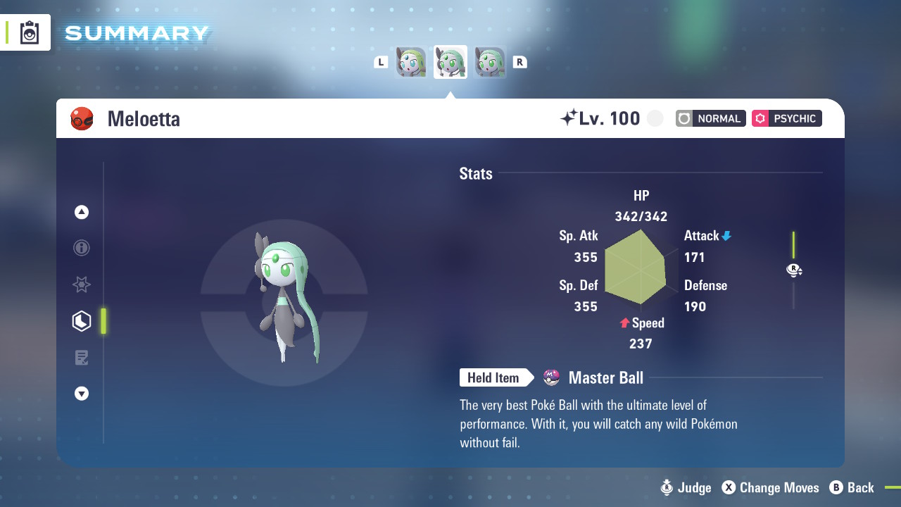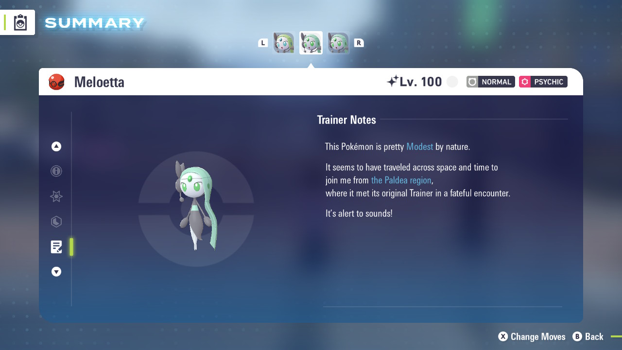 Shiny 6IV Meloetta for the games Pokemon Scarlet, Violet, and Legends Z-A versions.